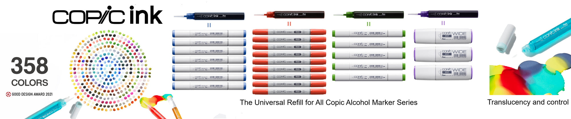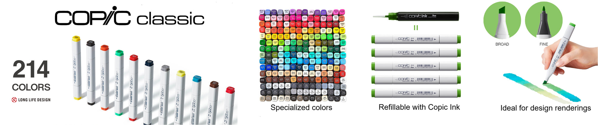 Copic Sketch, Copic Ciao, Copic Wide, Original Copic Square body, Copic ABS System, and Copic Multiliner SP Art Markers and pens are the highest quality alcohol based art supplies in the world.