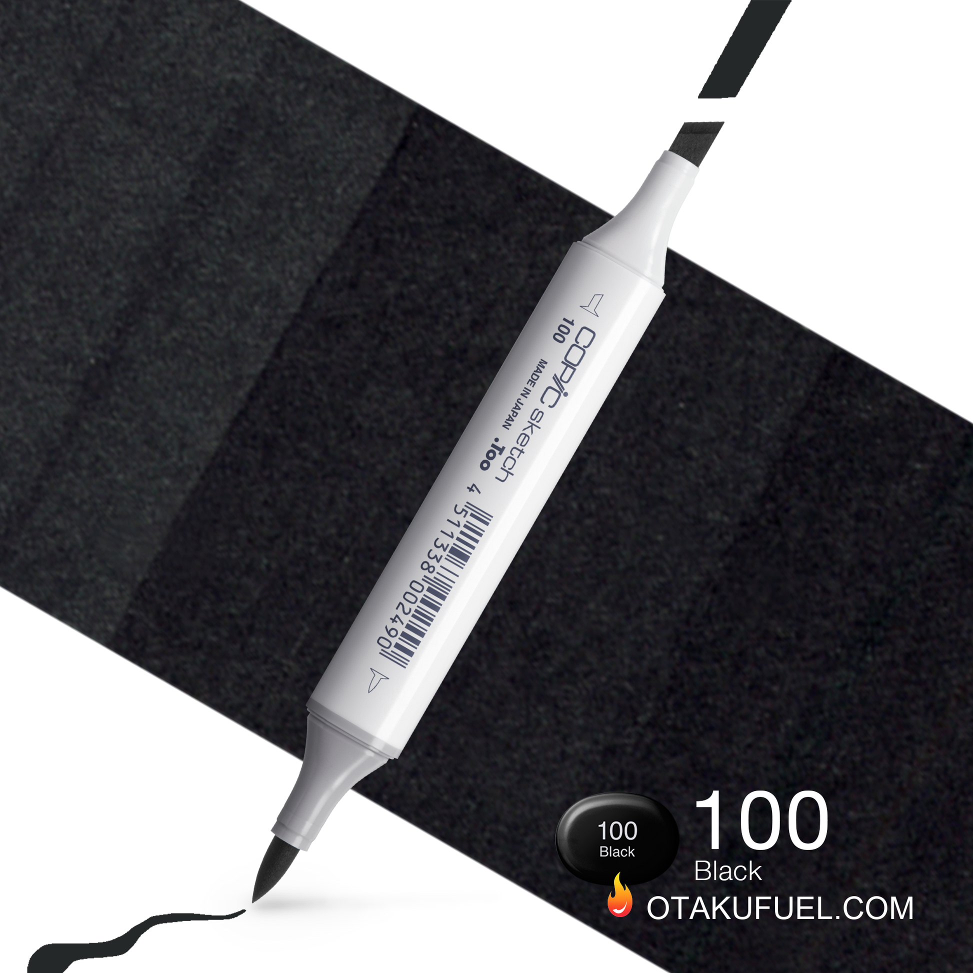 100-S Copic Sketch 100 Black Marker Copic makes the highest quality alcohol markers in the world. Developed for and widely adopted by the Japanese manga industry, Copic markers are ideal for all styles of art, design, illustration, and crafts. Durable, refillable, and featuring replaceable nibs, you only need to buy a Copic marker once. Vibrant, Smooth Coloration Copic ink applies smoothly and is easy to blend. The alcohol based ink dries acid free and does not destroy paper fibers the way water based inks do. Also, the open time on uncoated papers is limitless, so you can go back and re-wet the ink years later! Permanent & Non-Toxic Copic markers are free of harmful chemicals and overwhelming odors, making them much more enjoyable to use than other brands. Refillable Once you purchase a marker, it is yours for life. By simply refilling the marker and replacing damaged nibs, your marker will last a lifetime. Some artists have been using the same markers for almost 25 years. Dependability Copic markers will not dry out when not in use. With a guaranteed 3-year shelf life, your investment will not waste away in storage. Quality Tested Each marker is hand-tested for overall quality and color consistency three times before it is shipped from Japan. Super Brush Nib This unique, flexible brush allows for smooth blends and paint-like application. No other brush marker on the market has the feel and quality of the Super Brush nib.
