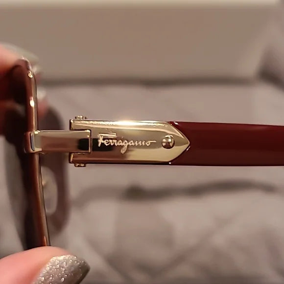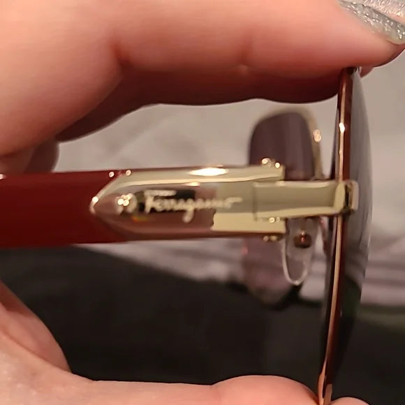 Ferragamo Sunglasses Bordeaux Light Shiny Gold Rectangular brand new